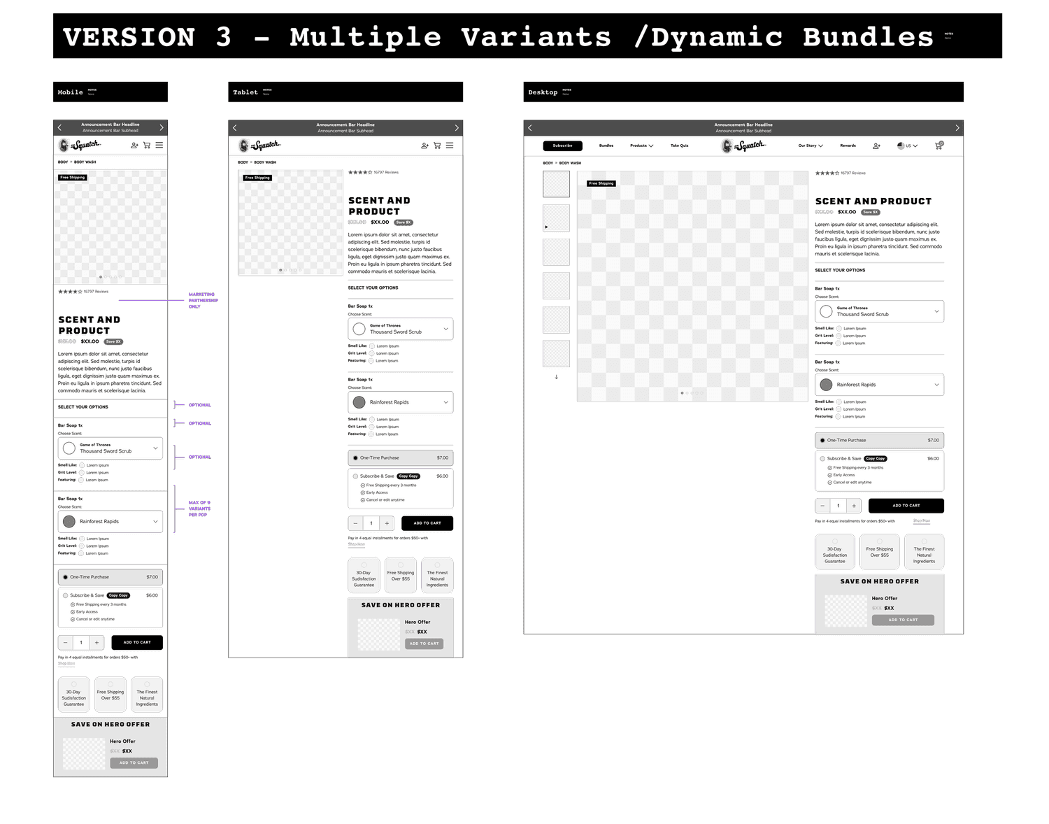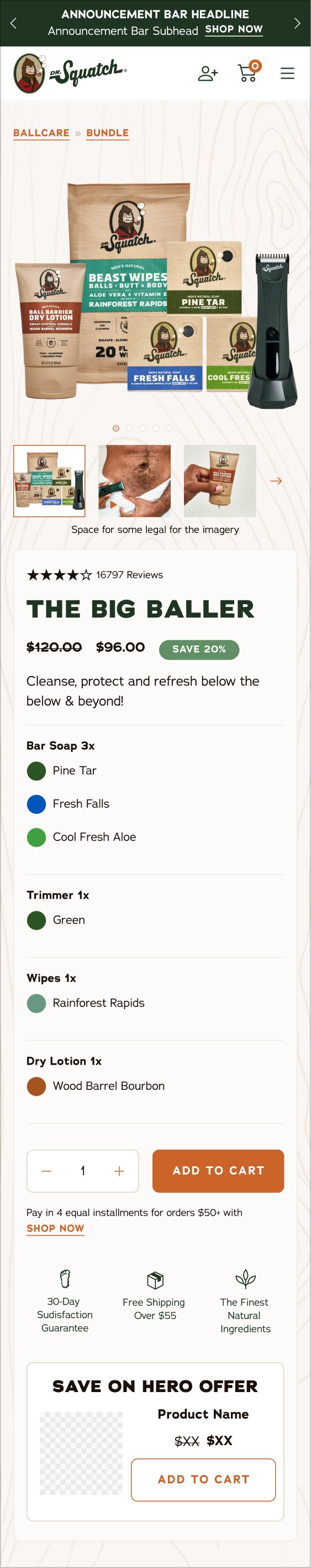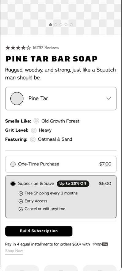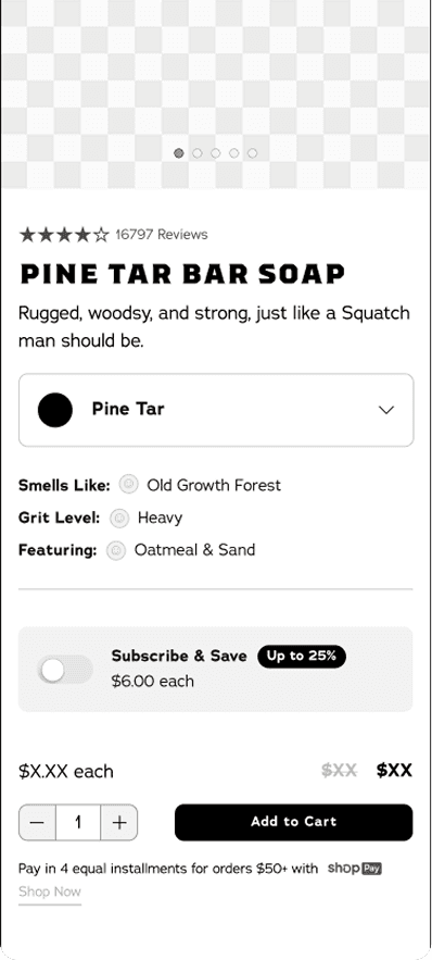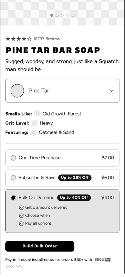 Marketing at Dr. Squatch dictates how products are sold or bundled. This creates a lot of complications as it is not consumer or product focused. It also requires a lot of different types of PDPs to house the information.