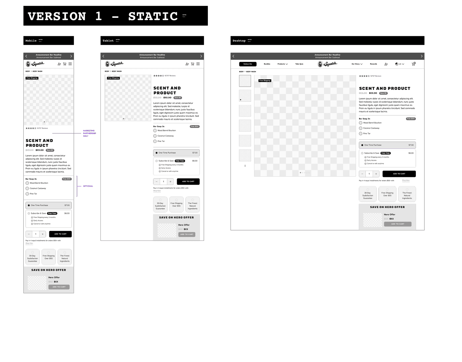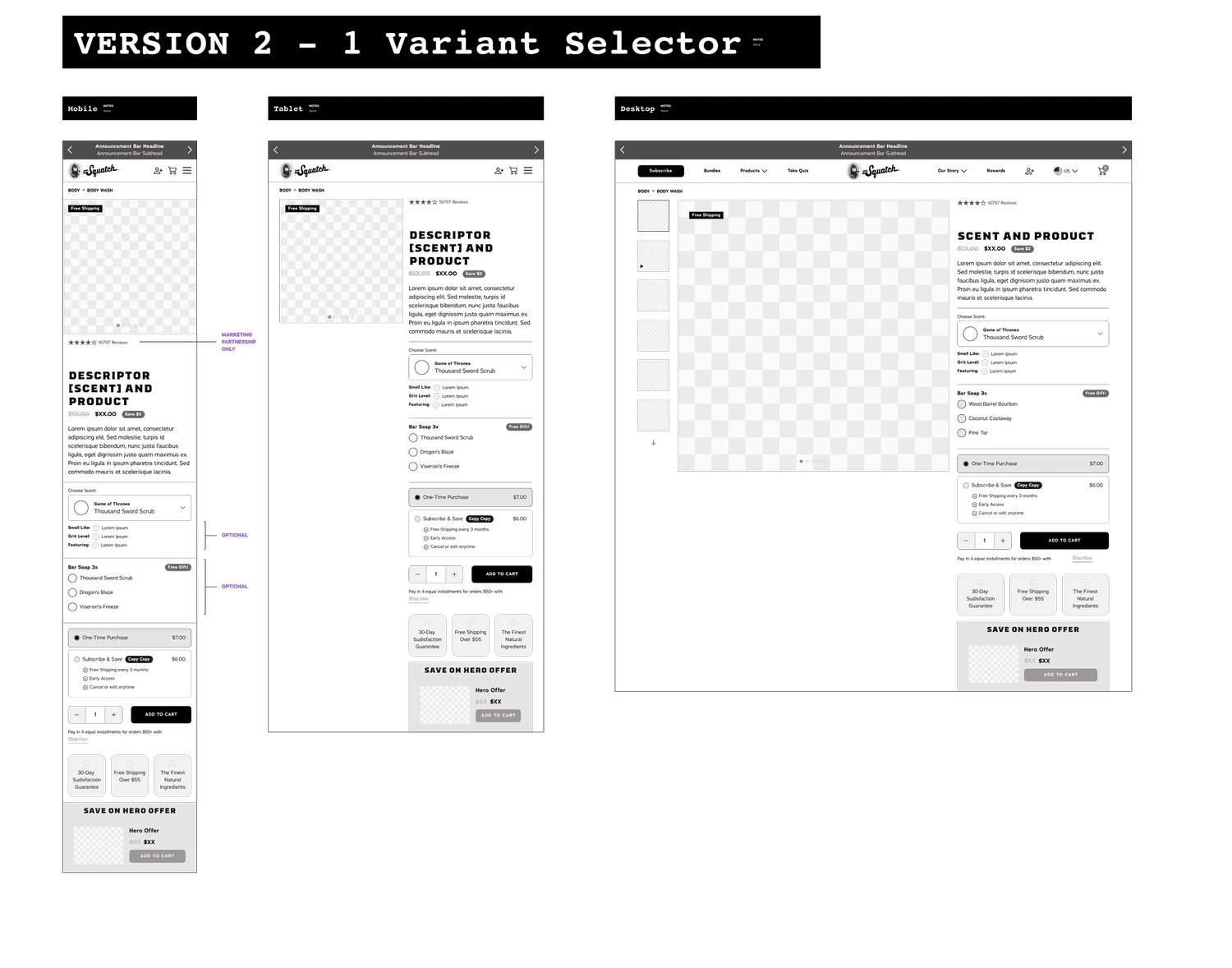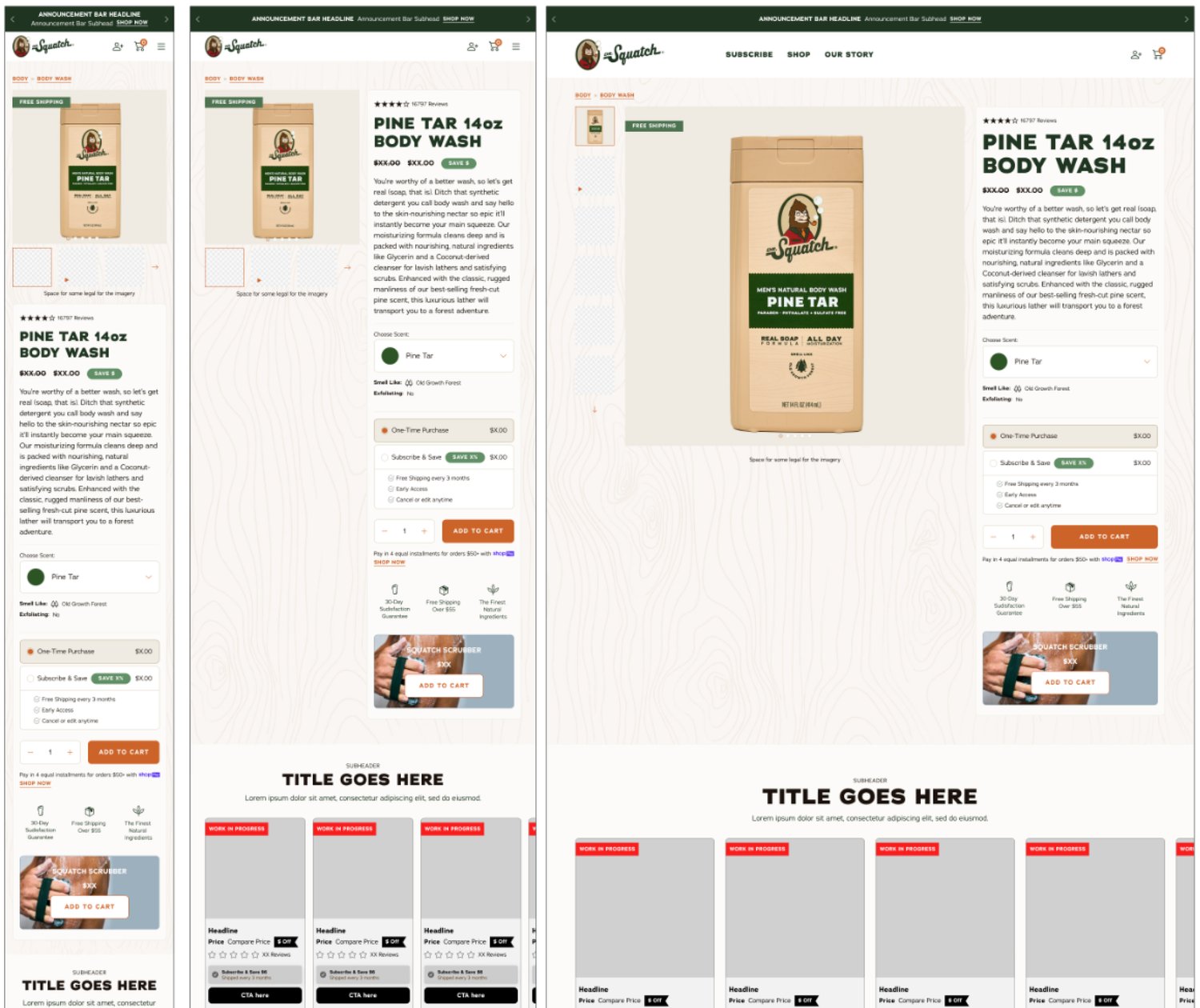 Dr. Squatch was launching a new category men’s personal hygiene (quickly followed by another new product Body Wash) which required a new PDP user interface. It was the Buy Box area that specifically need to be revamped so that there was the ability to select multiple options of scents, colors, and more for bundles and products.