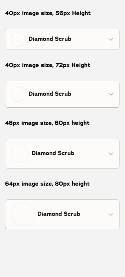 Explored sizing for the dropdown & the ability to have a color or icon next to the scent/flavor.