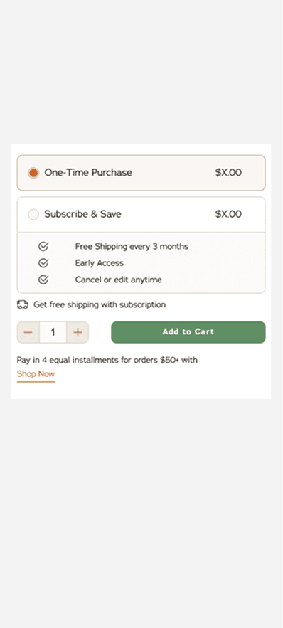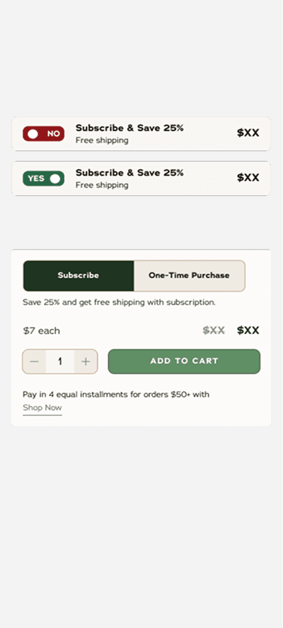 I explored making the radial selector for subscription a possible toggle. However testing revealed that consumers felt the radial button was easier to understand.