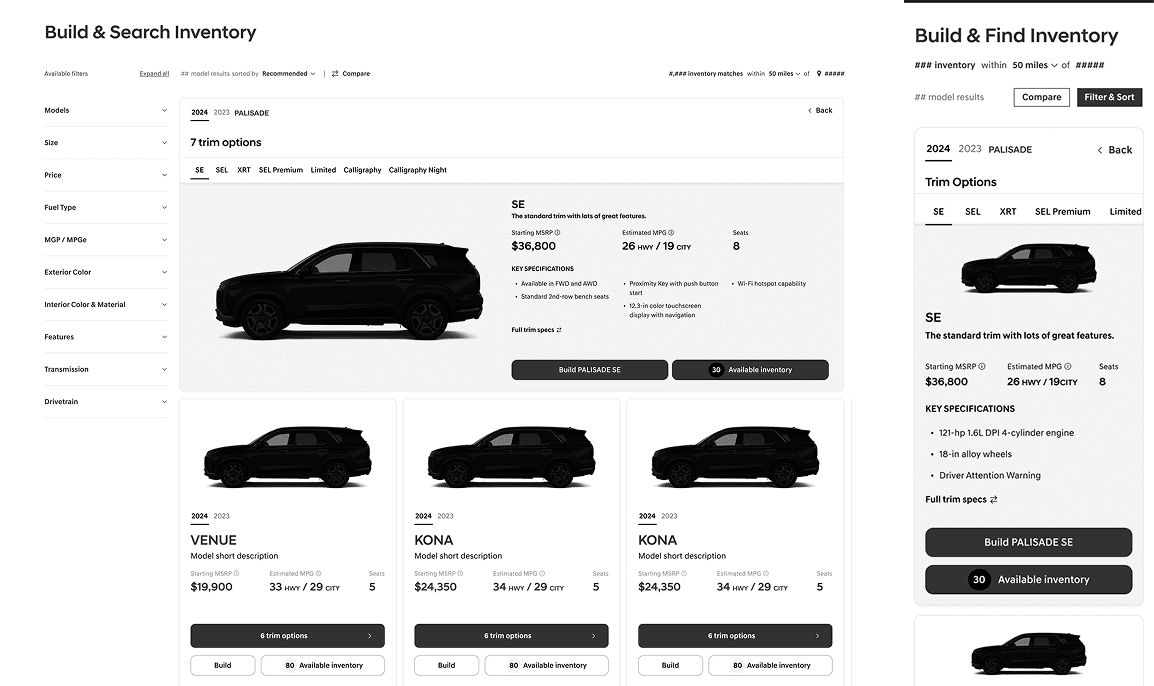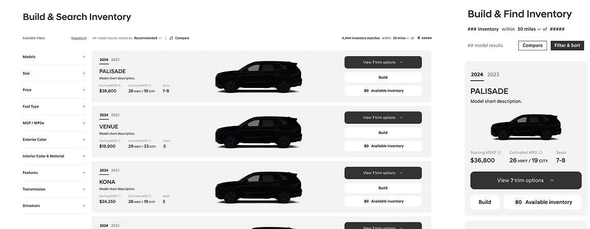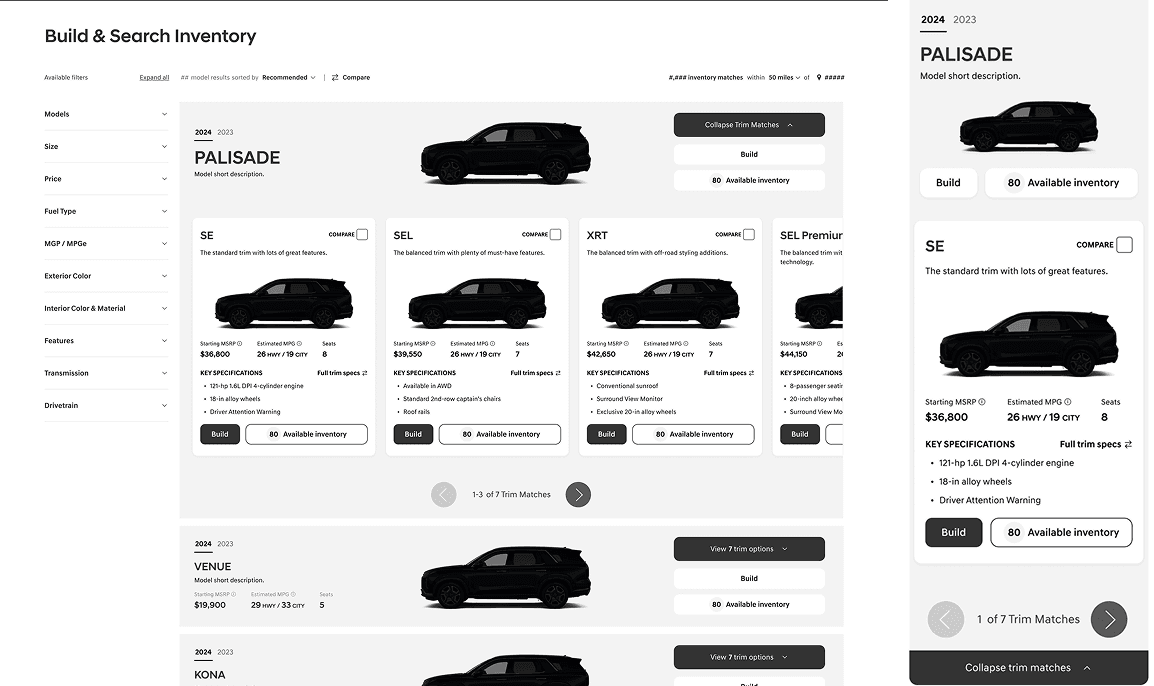 Consumers more than ever need the ability to view multiple models & trims to focus on the features that they need in a vehicle, however most traditional user journeys force a user to pick a model and then pick trims to view inventory.