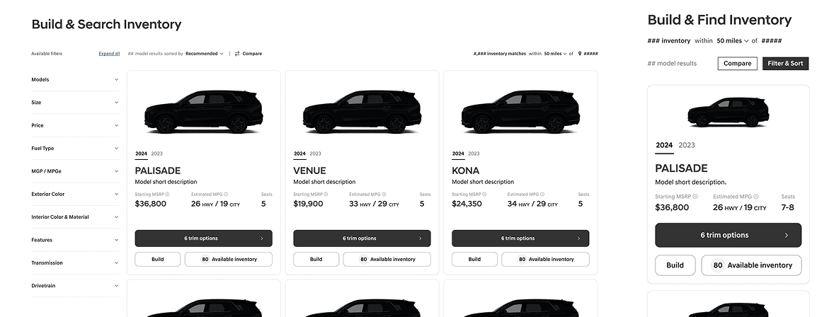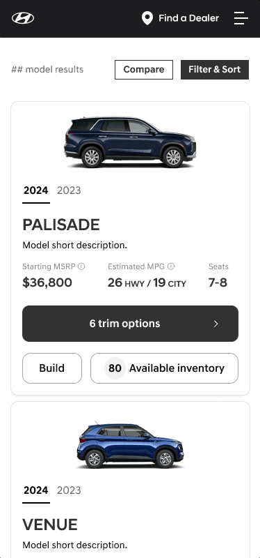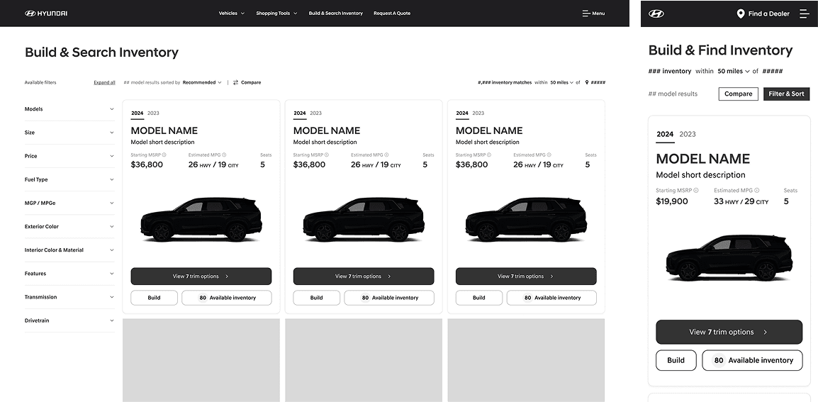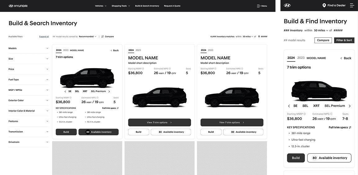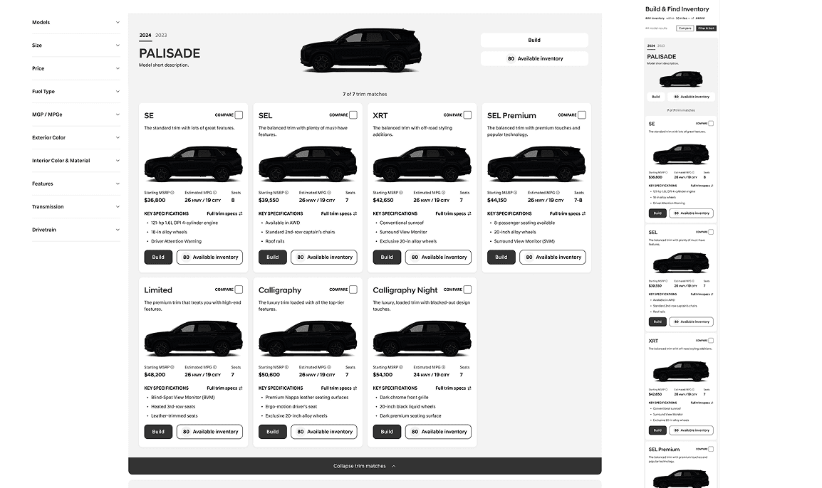 We needed to move past traditional user journeys and create a way consumers could easily compare and filter models and trims of vehicles.