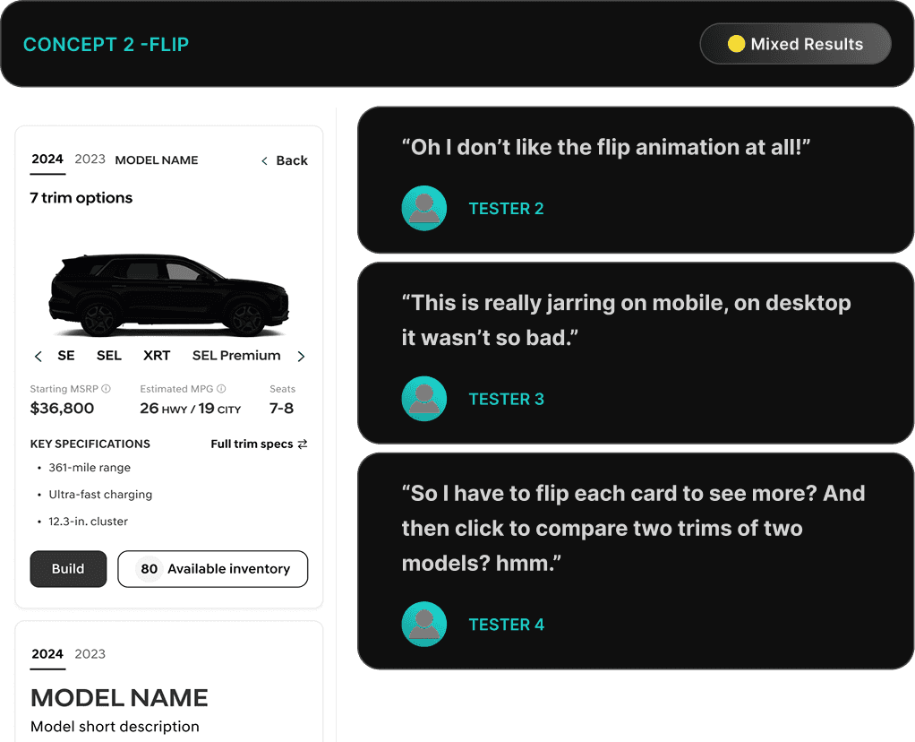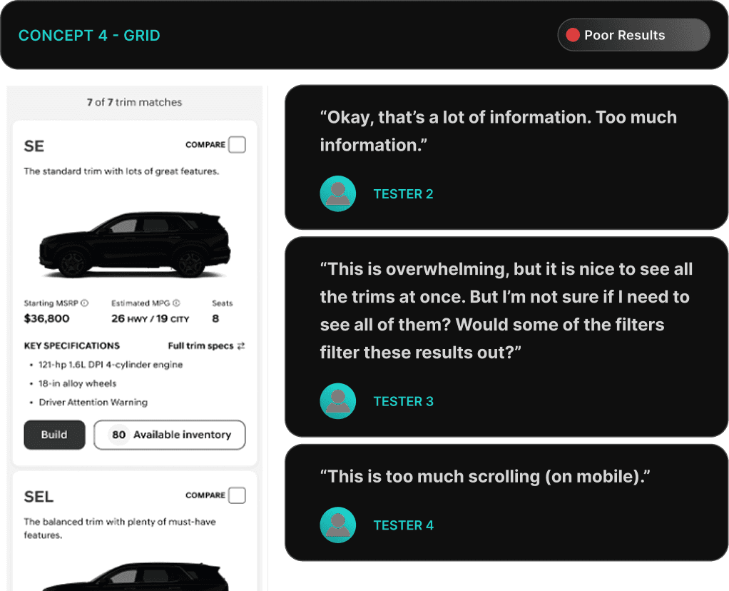 Testers did not like the increased need for scrolling, especially on mobile to view the various trims.